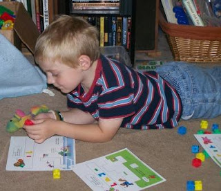 Kindergarten - Happy was pretty content to just be in the same room with us today. I did nothing formal with him. However, I have a box of activity toys for him to use. I set it up last year. They are various puzzles, games, and other things that help him build on skills. I'm quite content with letting him slowly get in to the routine of being in the same room with us and learning "listening skills" & "being quite to learn" skills. I'll continue to slowly introduce him to more formal learning as the year progresses. My goal is to have him be able to write the alphabet and his name as well as read simple sentences by the end of the year.