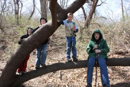 The boys waiting patiently with their materials to make their own Native game of "Twig & Pin."